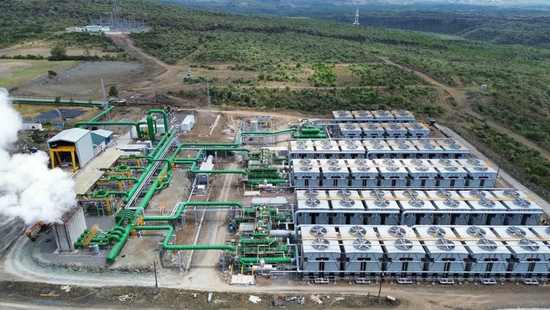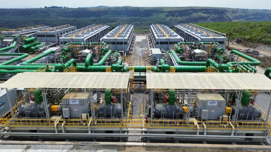 35 MWe 的 Sosian Menengai 地?zé)岚l(fā)電廠于 2023 年 8 月投入使用。該電廠使用兩臺開山地?zé)嵴羝磯郝輻U膨脹機,將廢氣排放到三個有機朗肯循環(huán)裝置中。圖片來源:開山集團