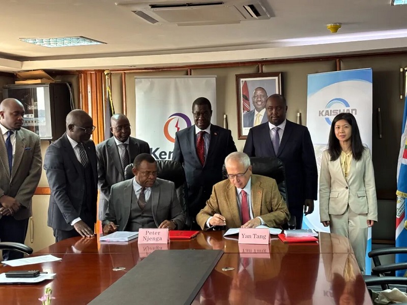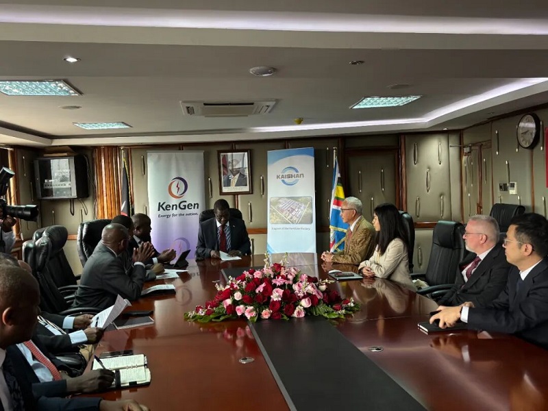 10月27日上午9時,肯尼亞共和國能源部。開山集團股份有限公司董事總經理湯炎博士與KenGen總經理兼CEO Eng,Peter Njenga分別代表各自公司簽署了《蒸汽供應協議》??夏醽喒埠蛧茉床块LHon,J.Opiyo Wandayi,EGH出席了簽字儀式。
